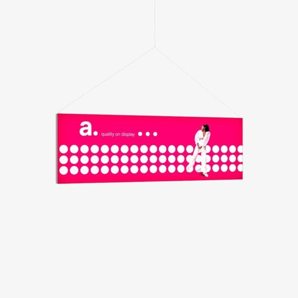 Dodatkowa Przestrzeń Reklamowa: adFrame LMD Hanging pozwala na efektywne wykorzystanie górnych partii przestrzeni, np. nad stoiskiem targowym. Dzięki temu zwiększysz powierzchnię promocyjną bez zajmowania dodatkowego miejsca na podłodze.