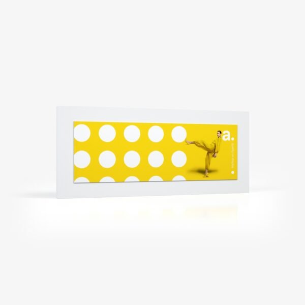 AdFrame STFL 600×200 to lekka rama reklamowa do powieszenia na ścianę, która wyróżnia się minimalistycznym designem oraz funkcjonalnością. Idealna do recepcji, biura czy innych przestrzeni odwiedzanych przez klientów. Dzięki możliwości umieszczenia symboli firmowych na wydruku, produkt zapewnia doskonałe wsparcie w budowaniu identyfikacji wizualnej i komunikacji najważniejszych informacji o twojej marce.