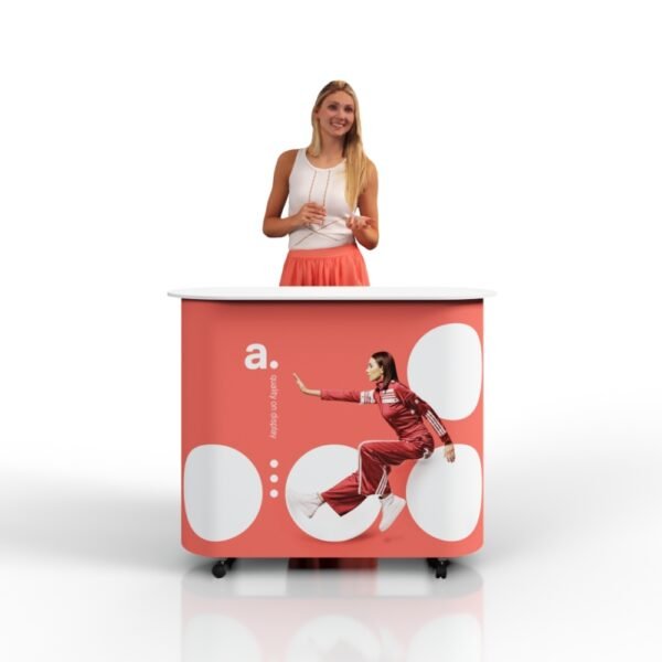 adTribune Elypse to mobilna, wytrzymała i wszechstronna lada targowa, która skutecznie wyróżni Twoją markę na każdym evencie. Dzięki nowoczesnemu designowi i praktycznym funkcjonalnościom, jest to idealne rozwiązanie dla firm, które chcą zwiększyć swoją widoczność i skuteczność działań promocyjnych.