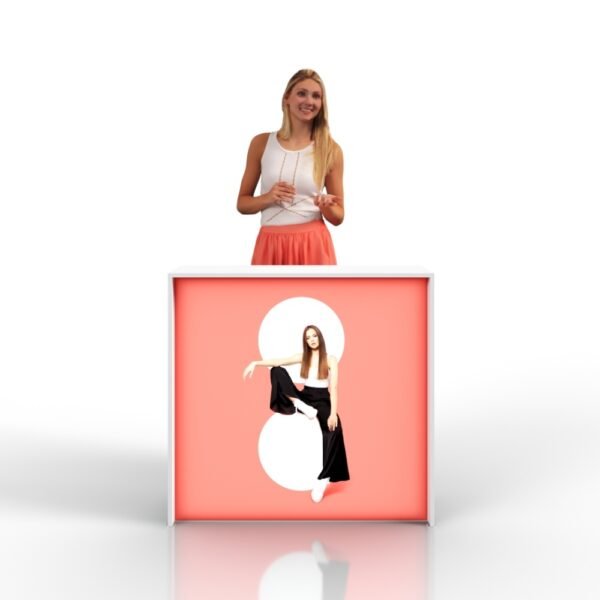 Poszukujesz rozwiązania, które podniesie profesjonalizm i przyciągnie uwagę klientów? Lada promocyjna adTribune Expo to wszechstronny wybór na targi branżowe, recepcje oraz promocje w centrach handlowych. Zastosowane podświetlenie LED sprawia, że wyróżnisz się na tle konkurencji i zapewnisz nietuzinkowy wygląd swojego stoiska.