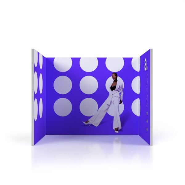 Prezentowane stoisko mFrame pozwoli Ci w pełni zaprezentować Twoją markę na targach, przyciągając wzrok odwiedzających. Dzięki wysokiej jakości wydrukom, które montujesz na ramach, Twoja reklama stanie się niezwykle efektowna. Sublimacyjna metoda druku, którą stosujemy, gwarantuje zarówno ekologiczną produkcję, jak i żywe, nasycone kolory oraz doskonałą jakość grafiki. Twoje stoisko stanie się wizytówką, która podkreśli profesjonalizm Twojej marki.