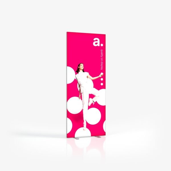 Stoisko targowe: adFrame Single będzie odpowiednim wyborem, jeśli twoje stoisko jest widoczne jedynie od frontu lub warunki architektoniczne pomieszczenia pozwalają tylko na taką formę ekspozycji. Możesz zamówić wydruk z grafiką także na tylną część produktu, ale nie będzie ona podświetlona.